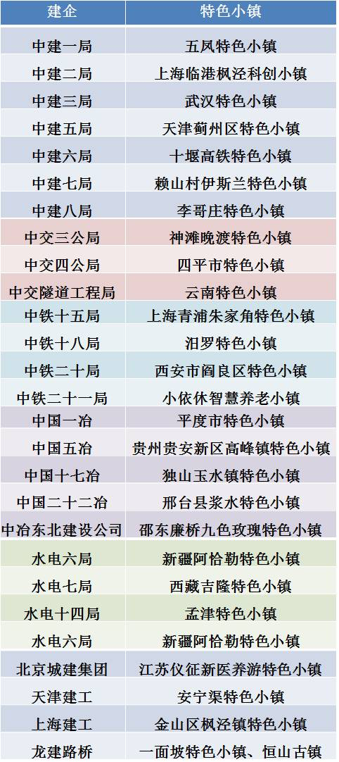 根据基建通公众号的不完全统计,目前各大建企打造特色小镇的具体情况如下(点击图片可放大):